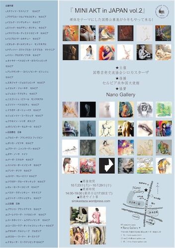 私が日本窓口を務めているセルビアの国際芸術交流協会シロカスターザ主催の国際巡回展 MINI AKT in JAPAN vol.2 のフライヤーが出来ました。 去年に引き続き、大阪 天王寺にあるNano Galleryさんに協賛頂き、多大なる応援をいただく事で実現することが出来ま…