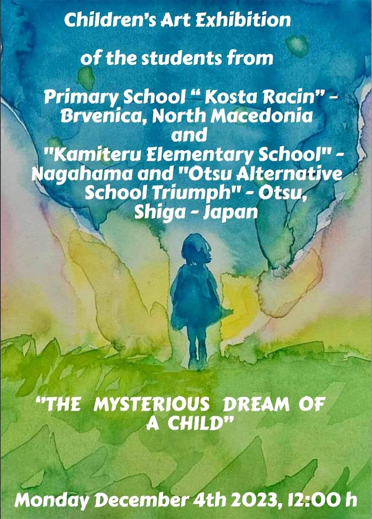 12月4日正午に北マケドニアの小学校で開催されるこどもアート交流展。