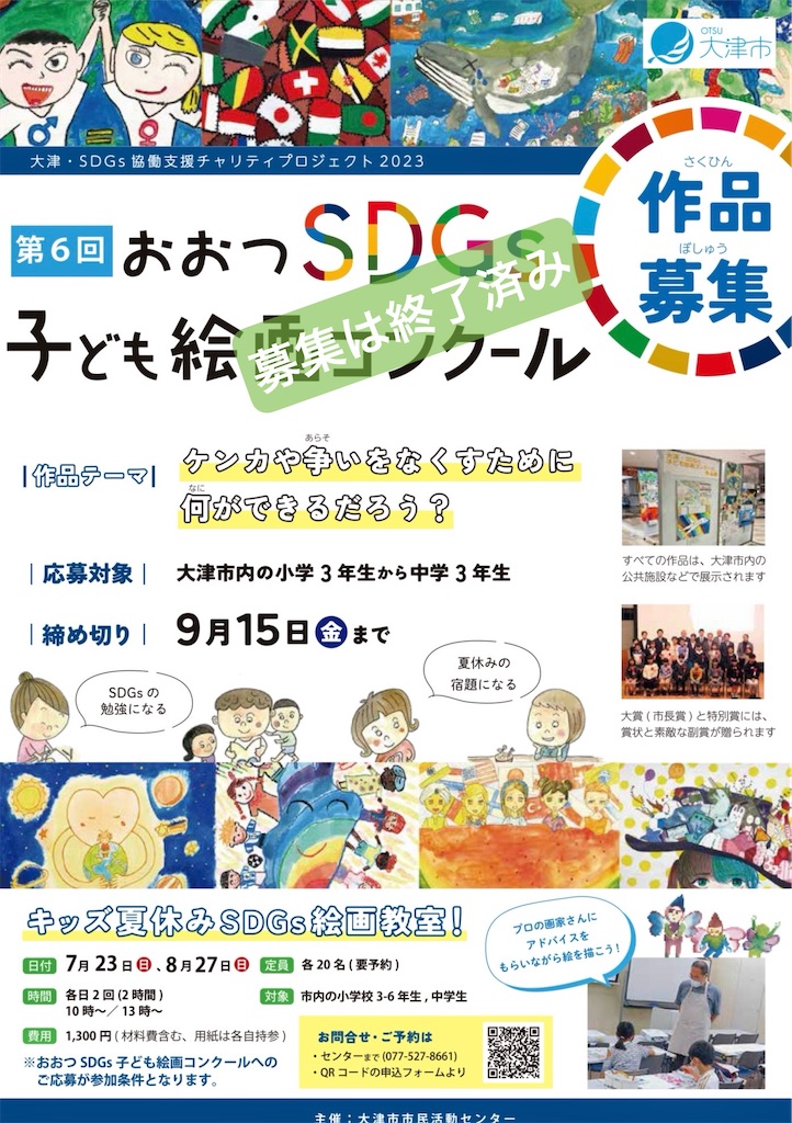 私がボランティア講師として関わっている大津市の企画「キッズ夏休みSDGs絵画教室」に参加した子どもたちが参加する絵画コンクールの作品展案内情報をシェアします。