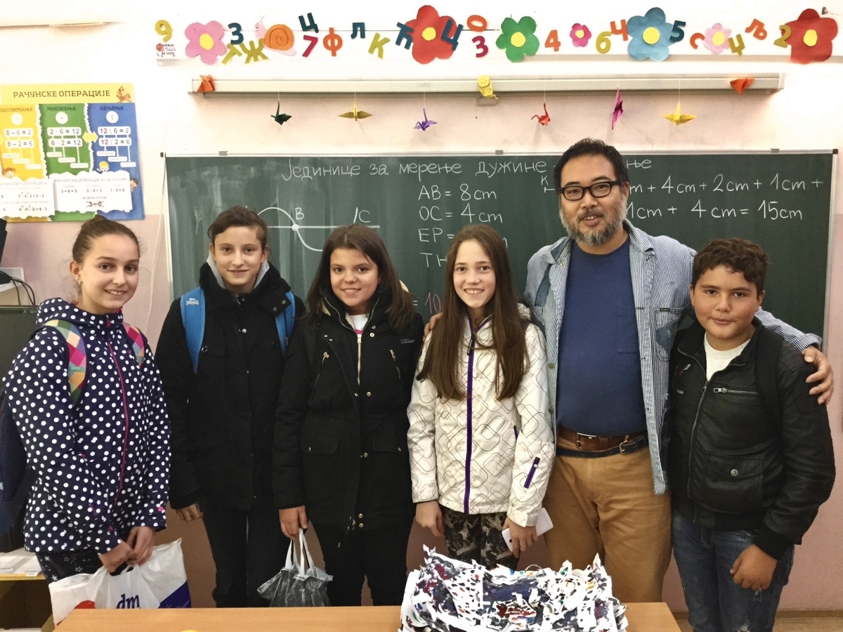 セルビアの友人から、北マケドニアの小学校を紹介してもらっての合同展示会もしました。